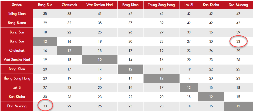 If you want to transfer to the MRT (blue line), you must get off at Bang Sue Station, which costs 33 baht, and walk to another platform to buy a MRT ticket.
